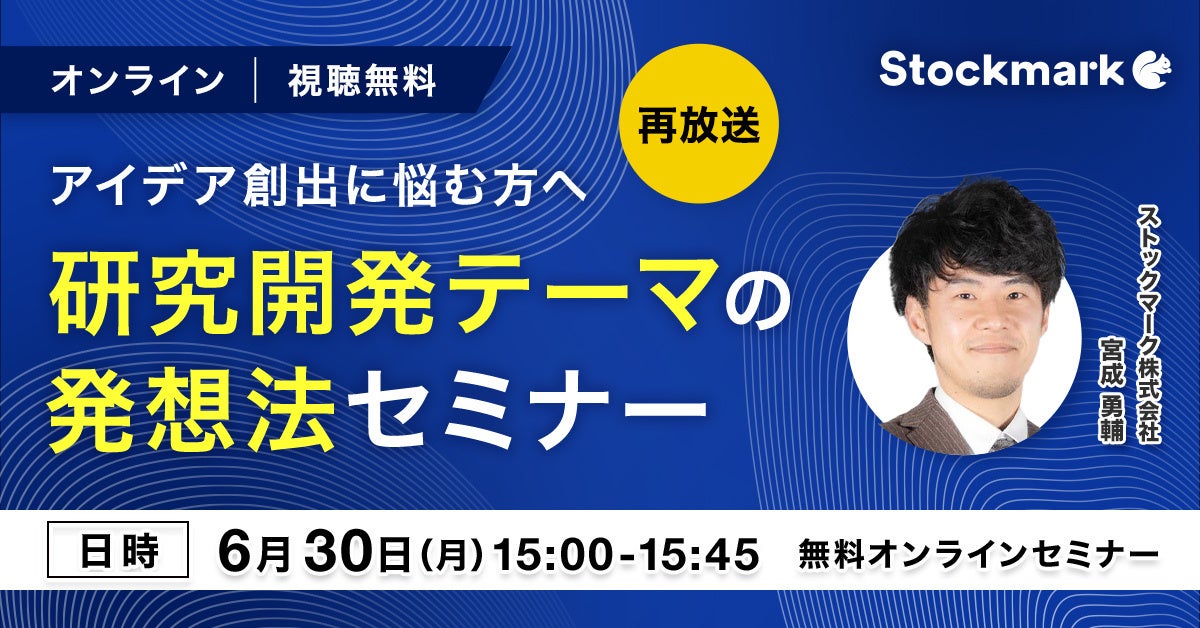【6月30日(月) 無料セミナー】『アイデア創出に悩む方へ 研究開発テーマの発想法セミナー』を開催(ストックマーク主催)