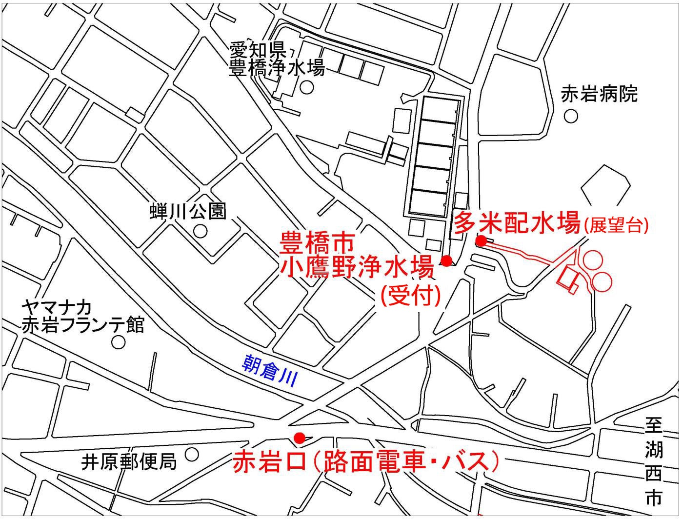 小鷹野浄水場、多米配水場の見学は、小鷹野浄水場(豊橋市東小鷹野二丁目9−3)へ直接お越しください