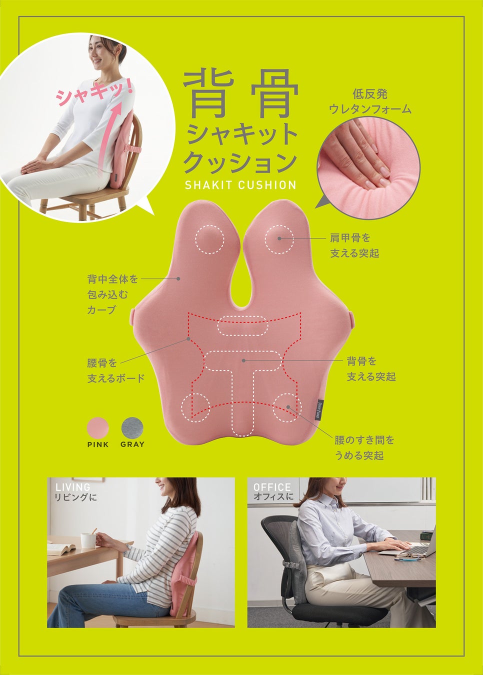 肩甲骨から腰までサポートしスッキリ美姿勢へ。「背骨シャキットクッション」を3月1日より発売