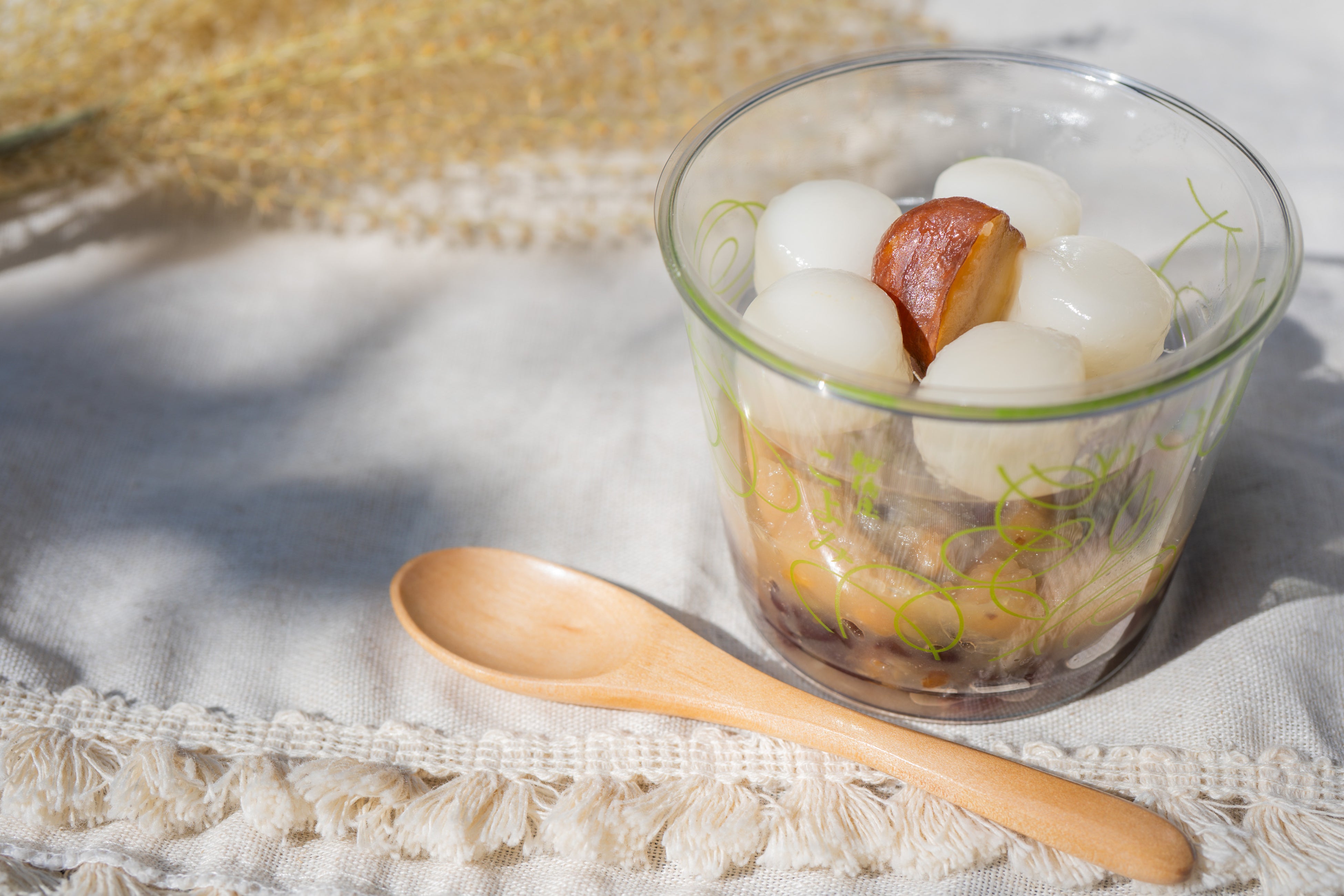 職人こだわりの小豆に、なめらかな栗ペーストを合わせました。栗ペーストはローストしたくるみ入りなので、食感やより深い味わいをお楽しみいただけます。白玉や渋皮栗と絡めて食べるのがおすすめです。