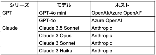 *GPT-4o miniに関しては、OpenAIから提供し、今後、Azure OpenAIからの提供に変更する可能性があります