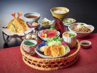 サガミ自慢のおろしそば、天ぷらに、純和鶏を使用したチキン南蛮、刺身がついた彩豊かな御膳。食べ応えも抜群です。