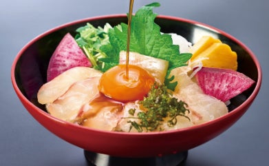 愛媛県産活〆真鯛を使用ており、さっぱりした甘さの特製タレと卵黄の旨味が合わさり、ご飯との相性は抜群です。愛媛県の郷土料理をサガミのこだわりをアレンジした商品です。