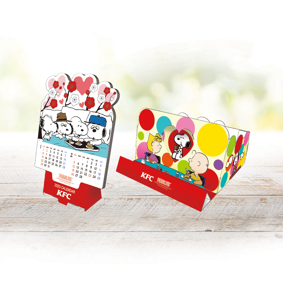 【スヌーピーコラボグッズ第2弾】KFCオリジナルデザインのスヌーピーグッズ「スヌーピーとなかまたちカレンダー」「マルチこものいれ」が12月26日(月)、キッズメニューに新登場