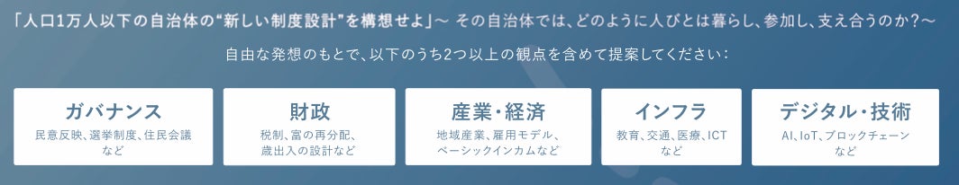 人口1万人以下の”新しい自治体”を構想する、若き挑戦者を募集。大賞には50万円の賞金