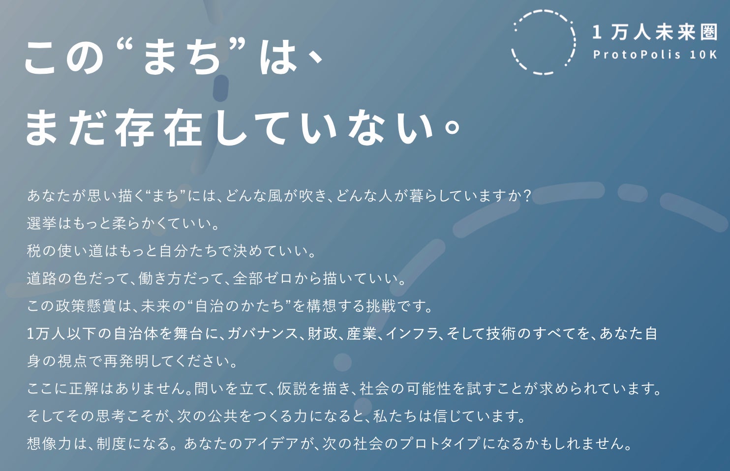 政策懸賞論文「1万人未来圏」募集開始 ―制度・経済・技術で描く、小さな社会のプロトタイプ―
