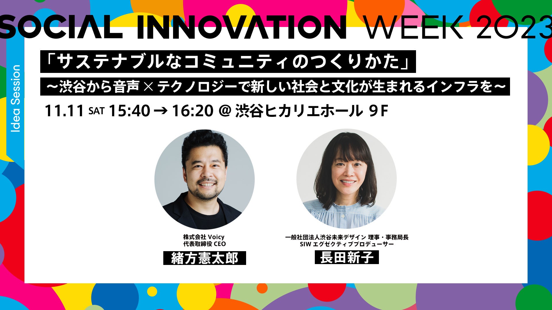 11月11日(土)15:40〜16:20「サステナブルなコミュニティのつくりかた」~渋谷から音声×テクノロジーで新しい社会と文化が生まれるインフラを~