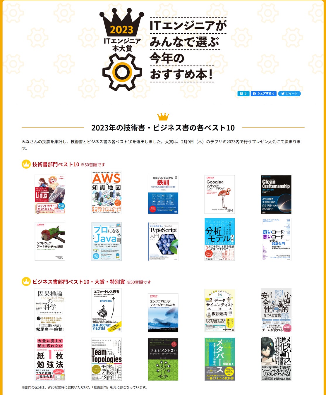 ■ITエンジニア本大賞2023 技術書・ビジネス書各ベスト10