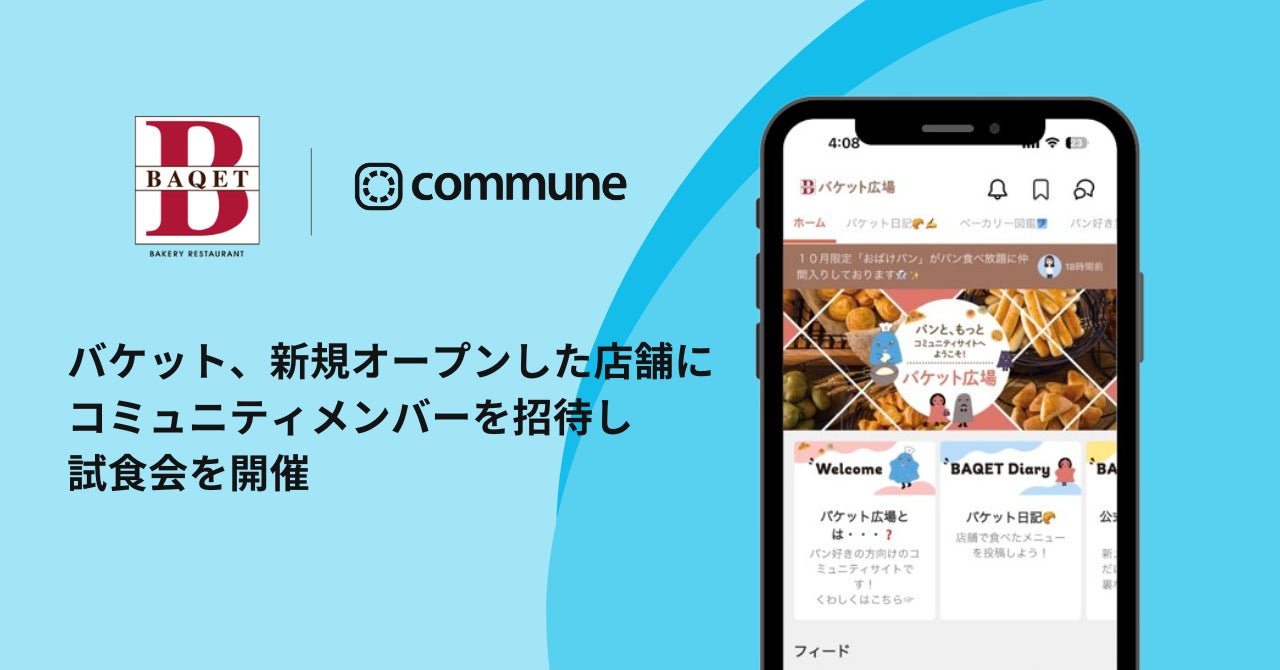 コミュニティサクセスプラットフォーム「Commune(コミューン)」を提供するコミューン株式会社は、Communeを導入する、株式会社サンマルクホールディングスが運営するベーカリーレストラン「バケット」のファンコミュニティ「バケット広場」のコミュニティメンバー向けに、新規オープンした店舗で試食会を開催したことをお知らせします。