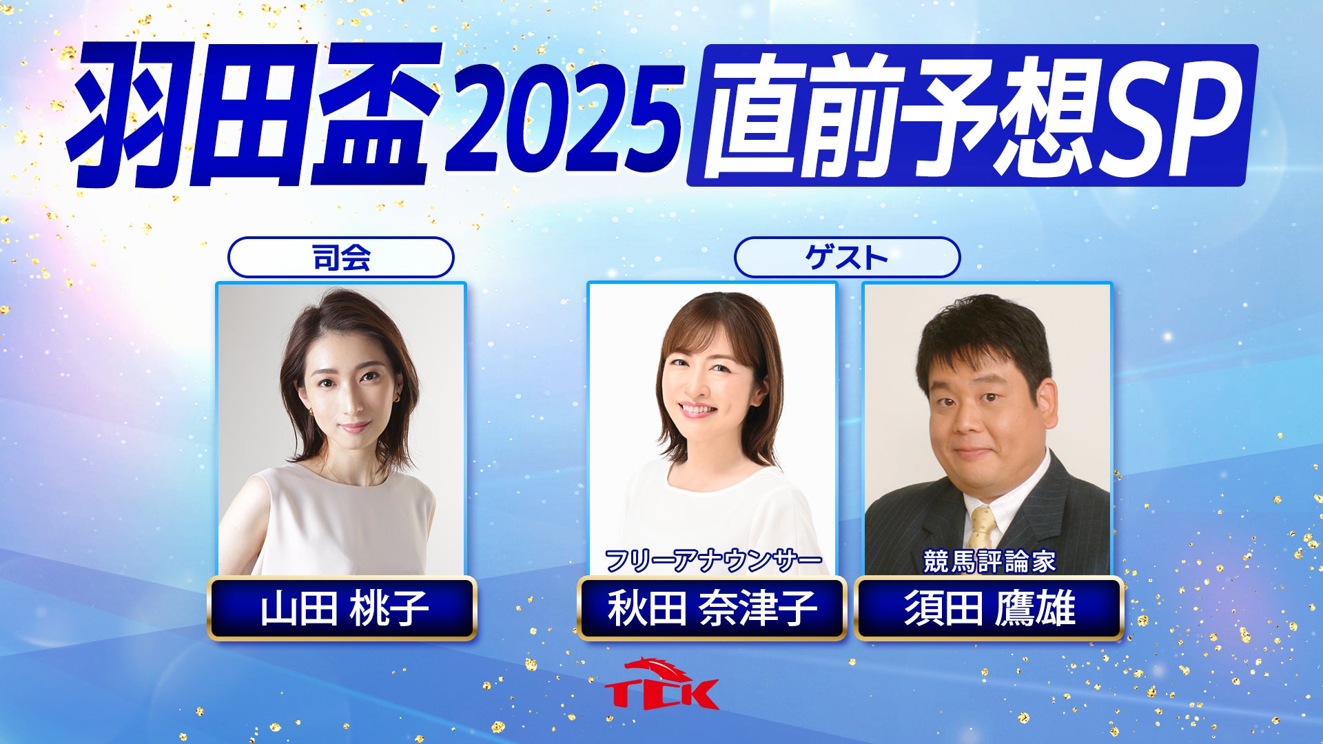 番組では、司会に南関キャスターの山田桃子さん、ゲストにフリーアナウンサーの秋田奈津子さんと競馬評論家の須田鷹雄さんをお迎えし羽田盃を徹底分析し予想します。