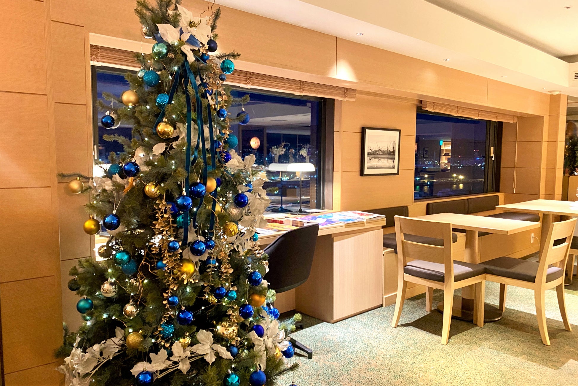 エントランスやクラブラウンジ内も、ブルーを基調にシルバーやゴールドのオーナメントを飾りクリスマスの装いに。洗練された中にも温かみのある雰囲気でお客さまをお迎えします。