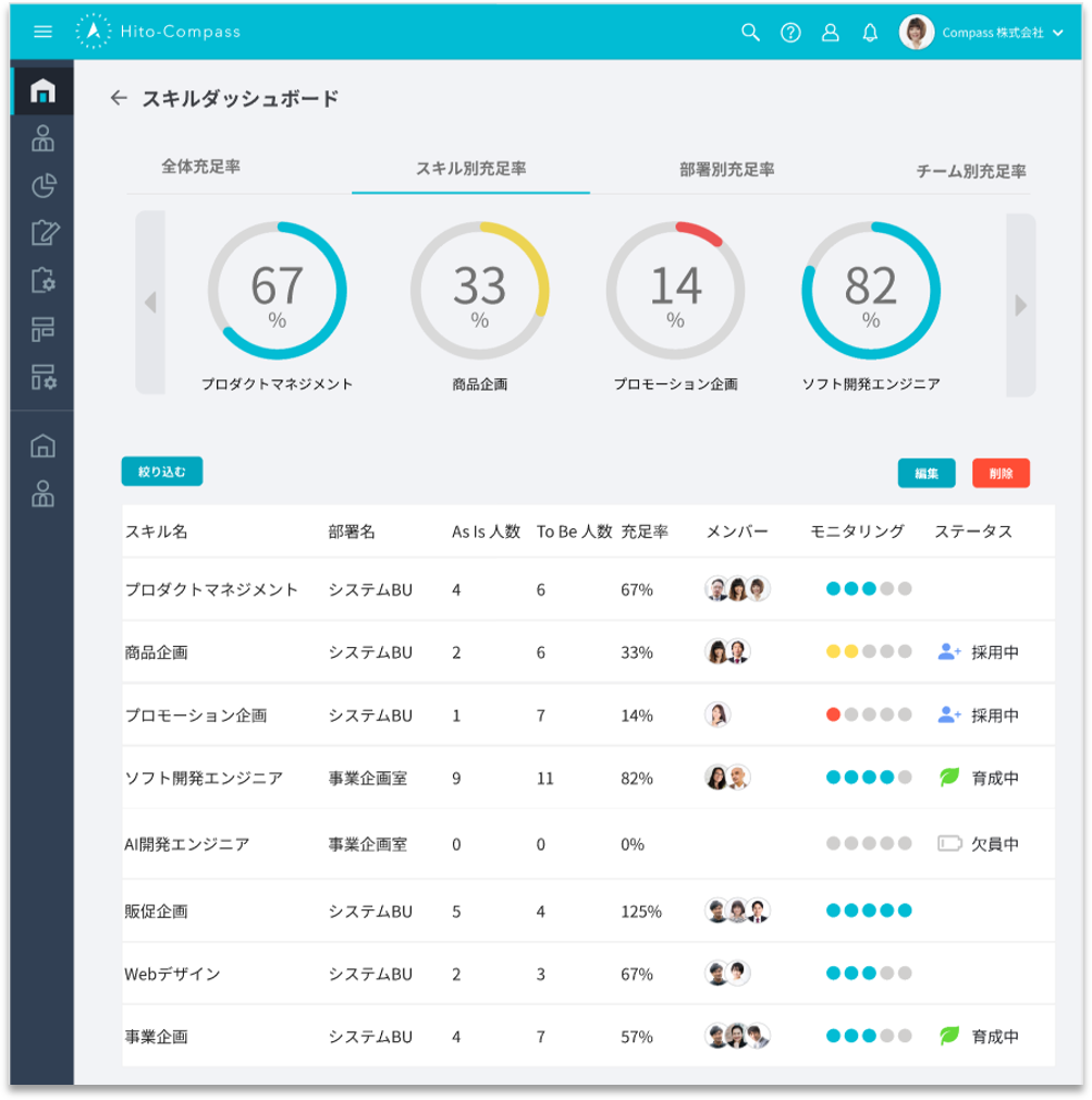 プリセットのスキルを網羅し、スキルの定量化をサポート
