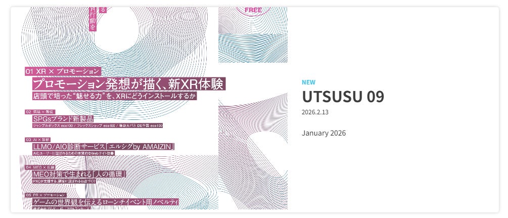 WEBメディア版は、冊子版「UTSUSU」の掲載記事だけでなく、webメディア版限定の多彩なコンテンツ(●PXCプロジェクト実績●クライアント実績●プロモーション情報●インタビュー記事)を毎月掲載しています。