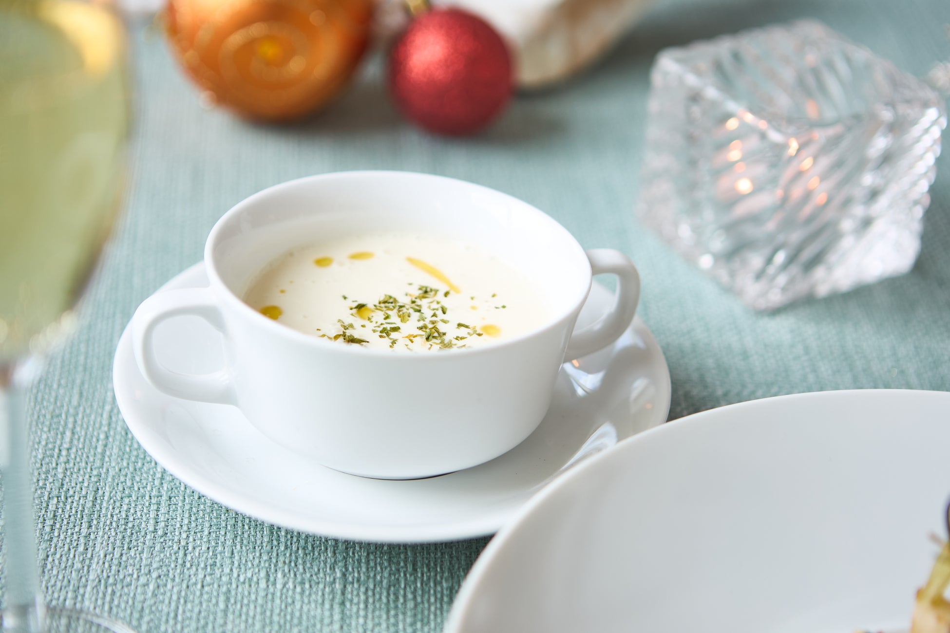 雪を思わせる白いスープには、冬が旬のカリフラワーを使用。素材の旨みが際立つ濃厚な味わいです。