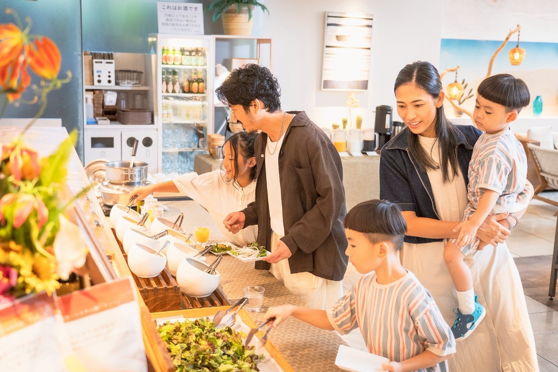 ご朝食には、4種のメインプレートからのチョイスに加え、三浦野菜のサラダビュッフェやスープ、シリアル、ドリンクをご用意しております。爽やかな朝を彩るバリエーション豊かなメニューです。