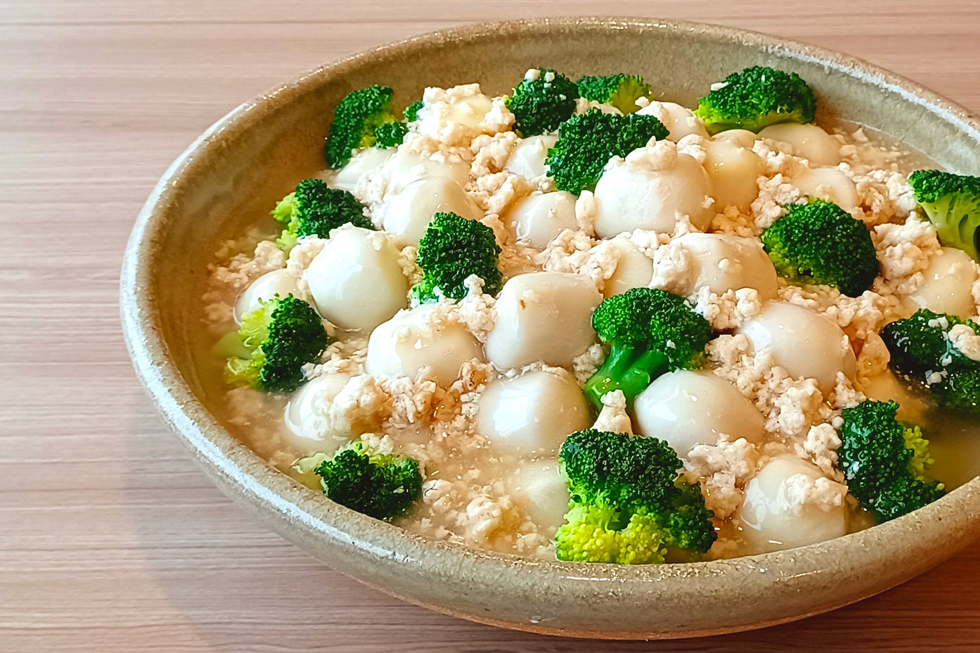 (3)里芋と大山ブロッコリーの上代あま酒そぼろあんかけ
