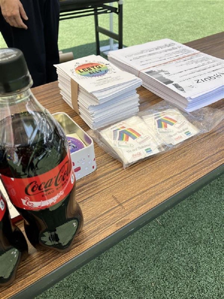 コカ·コーラ ボトラーズジャパン株式会社(本社:東京都港区、代表取締役社長 最高経営責任者:カリン・ドラガン、以下、コカ·コーラ ボトラーズジャパン)と、株式会社ファミリーマート(本社:東京都港区、代表取締役社長:細見研介、以下、ファミリーマート)は、SDGs(持続可能な開発目標)の分野における連携・協力事業推進の一環として、6月30日(月)に関西大学の千里山キャンパスで開催された「関大万博フェスタ~巡縁祭~」に合わせ実施された「KANDAI RAINBOW DAY」に協同出展し、LGBTQへの理解を促進するために作成したオリジナルステッカーの配布などを実施しました。