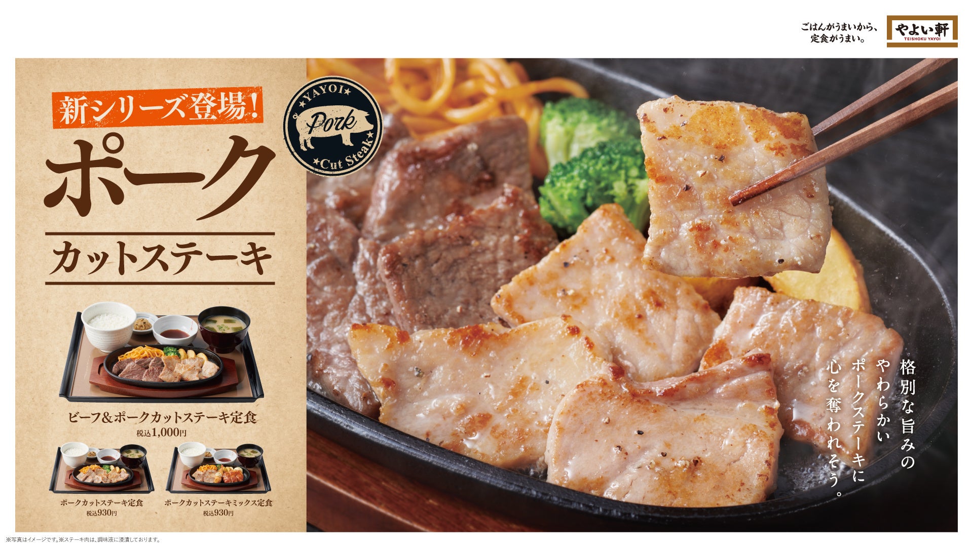 - 「やよい軒」で楽しむ“ポークカットステーキ”!ビーフとポークの2種を味わえる欲張りメニューが登場