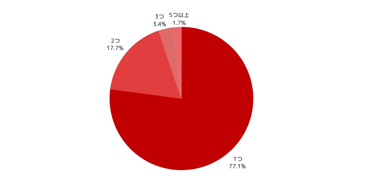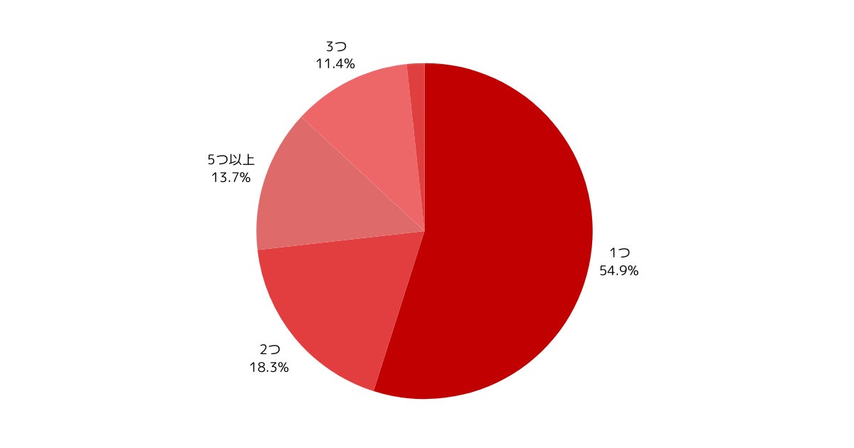 「1つ」が54.9%で過半数を超えたが、「2つ」との回答も18.3%集まった。なお、「5つ以上」との回答も13.7%と3番目に多く集まった。