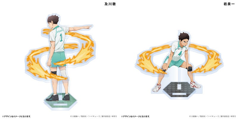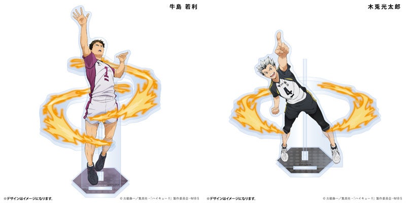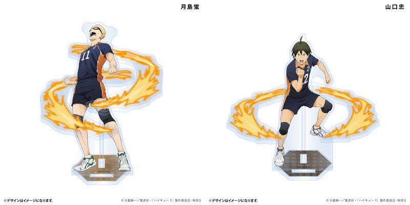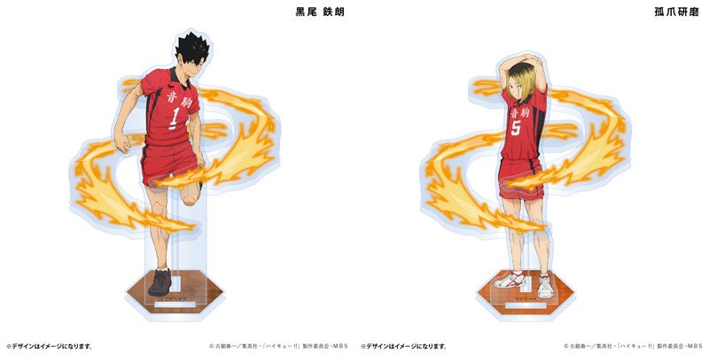 アニメ「ハイキュー!!」より、ユニフォーム姿のキャラクターと炎のエフェクトがかっこいいアクリルフィギュアと、キラキラ!オーロラ仕様のゴムバンドが登場!9月14日よりFAN+Lifeにて予約受付開始