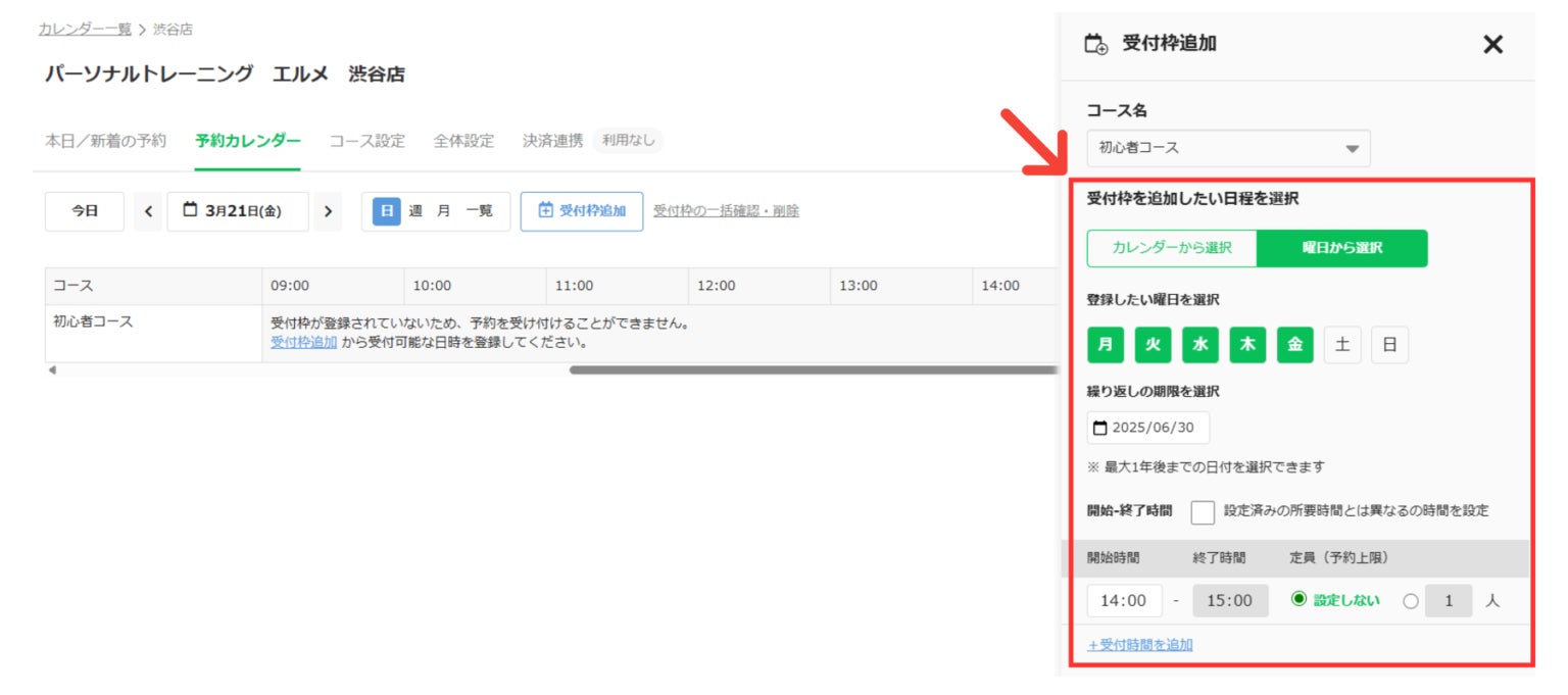 ■曜日ごとの受付枠登録で、運用の自動化が進む