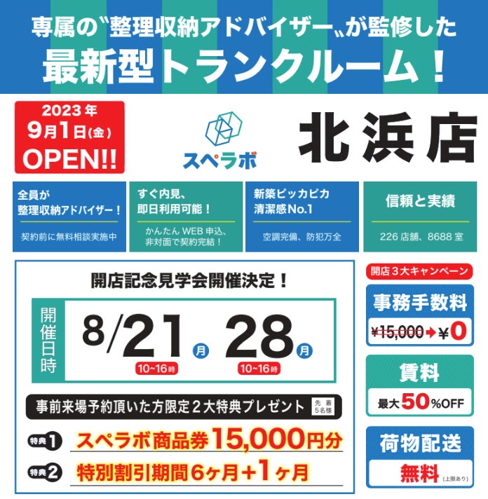 【北浜店/9月1日(金)オープン】見学から契約、解約まで完全非接触・非対面、お申し込みからご利用まで最短1時間!都内、大阪などにて絶賛運営中のトランクルーム【スペラボ】が北浜駅近くに出店!