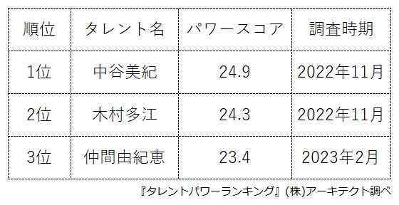 本ランキングは、2023年2月度に実施したタレント調査データ(一部過去実施データ)を利用し、タイトルに応じてランキング形式でまとめたものです。