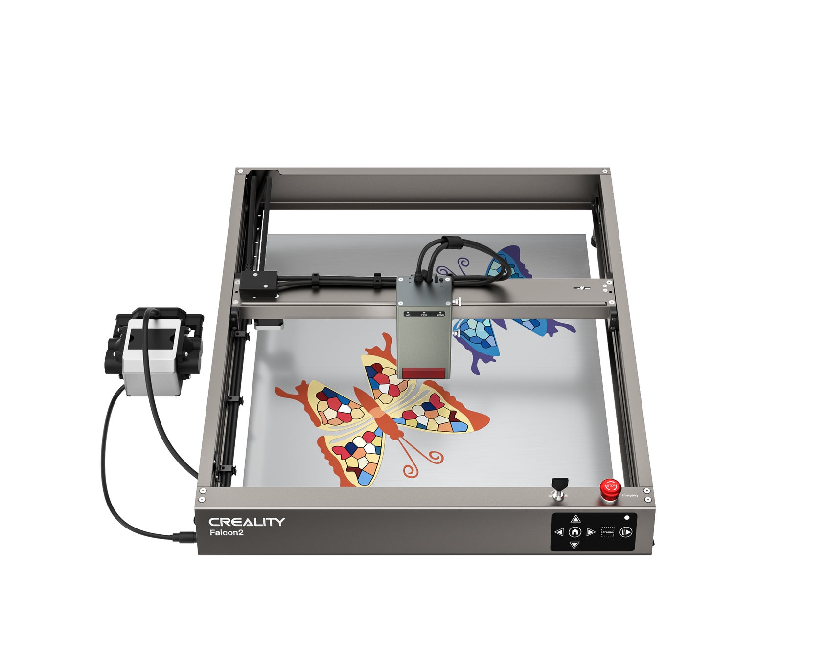 Falcon2 40Wは、Creality社が開発した最高出力で最もパワフルなレーザー彫刻機です。彫刻やカッティングのニーズに応じてスポットサイズを自動調整するダイナミックスポット機能を搭載しており、より繊細な彫刻や効率的なカッティングを可能にします。最大25,000mm/分の切断・彫刻速度で、カラー彫刻、エアアシストにも対応し、ユーザーを保護するための複数の安全対策も備えています。