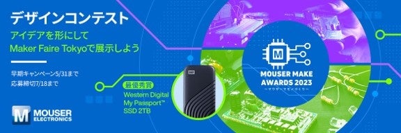 マウザーは、「Mouser Make Awards 2023」本戦に先立って作品アイデアを募集するキャンペーンを実施しています。本アイデアキャンペーンに応募した方の中から抽選で10名様に、Mouser でのお買い物権利1万円(税込)を贈呈いたします。
