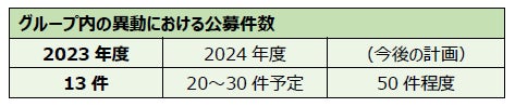 従来プロジェクトごとにグループ内での公募による異動を実施してきましたが、「キャリアチャレンジ制度」として、仕組みを整備するとともに、通常異動においても公募による異動を実施することでその規模を拡大していきます。