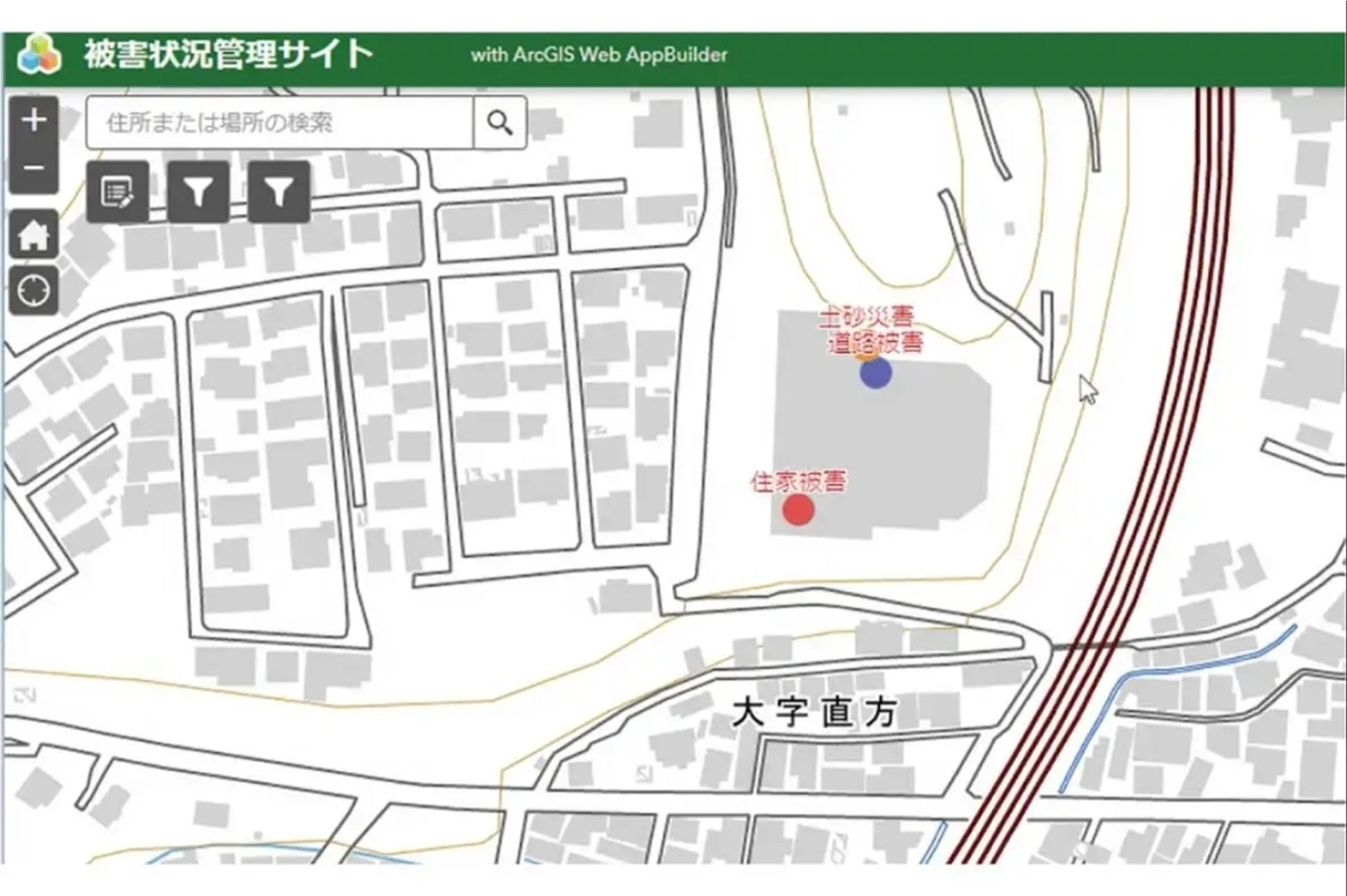 災害発生時に下記情報をリアルタイムで共有します。(直方市内に限る)