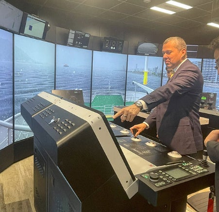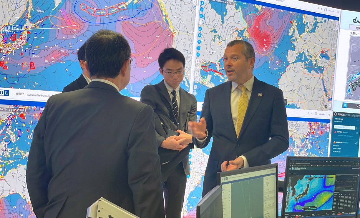 またサミット開催に先立ち、国際海事機関(IMO)事務局長のアルセーニョ・アントニオ・ドミンゲス・ベラスコ氏が当社を訪問し、当社会長の池田潤一郎らが安全運航や脱炭素に向けた当社の先進的な取り組みについて説明しました。