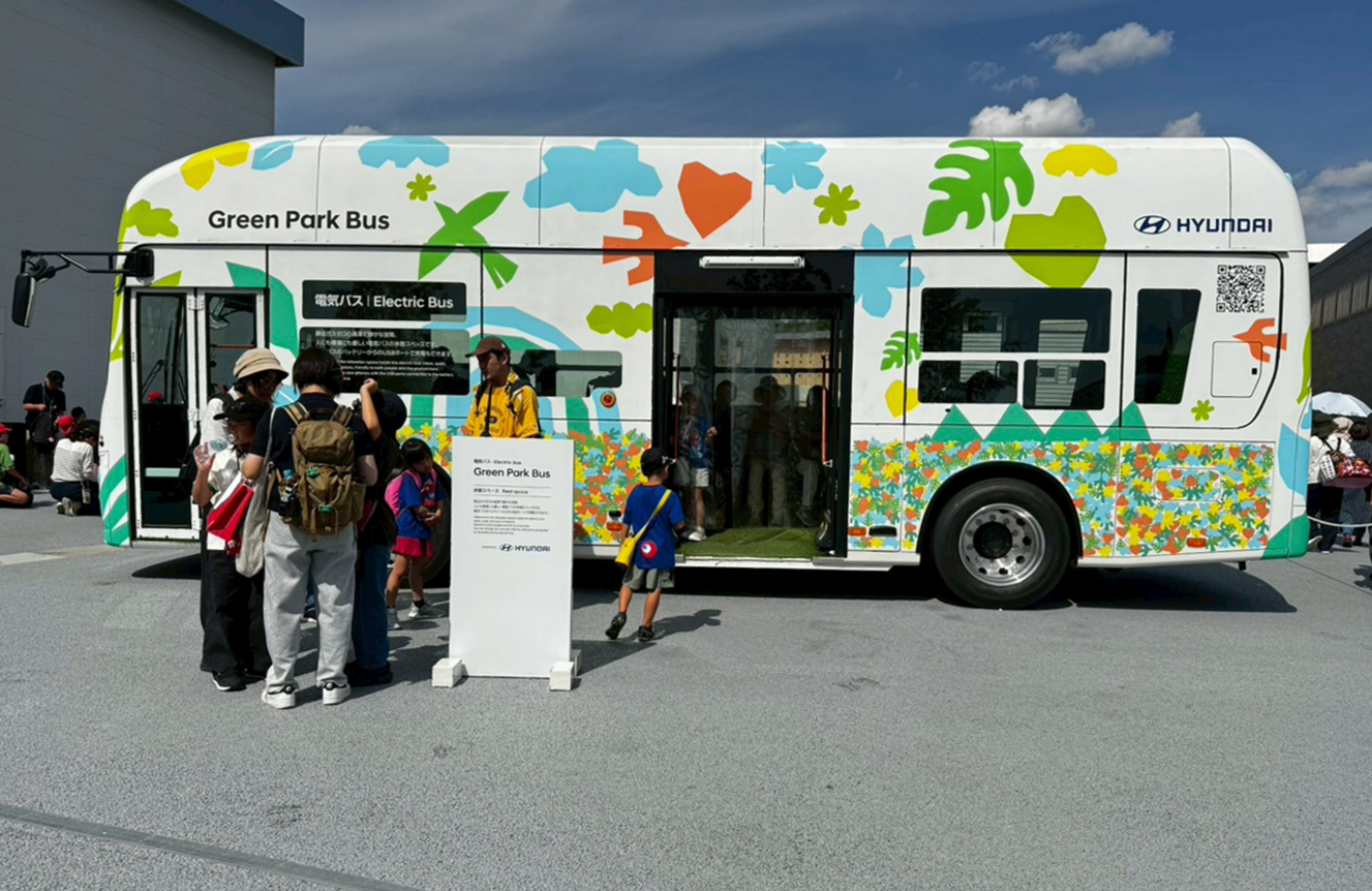 排出ガスゼロのEVバス運行を通じ、ヒョンデが目指すゼロエミッション社会を来場者が体験。