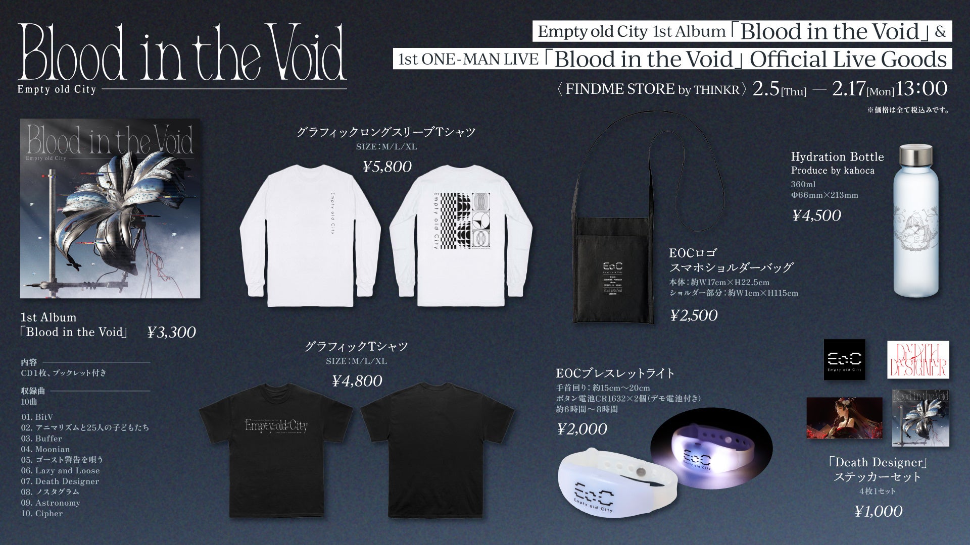 「Blood in the Void」は、Empty old Cityの世界観を凝縮し、アルバム用に書き下ろした新曲6曲と先行シングル4曲で構成。