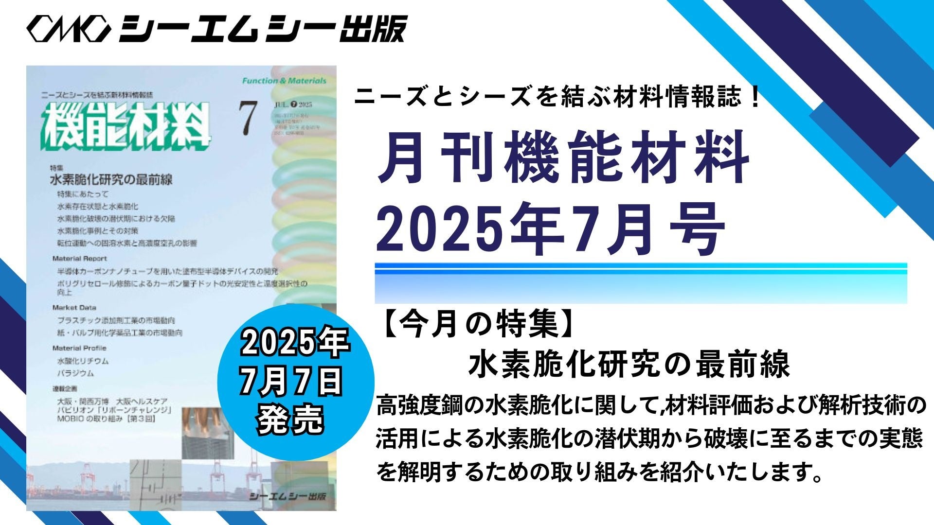 株式会社シーエムシー出版(代表取締役:金森洋平)は『月刊機能材料2025年7月号』(税込4,950円)を、2025年7月7日に発売いたします。当社ECサイトおよび全国の書店にてご購入いただけます。