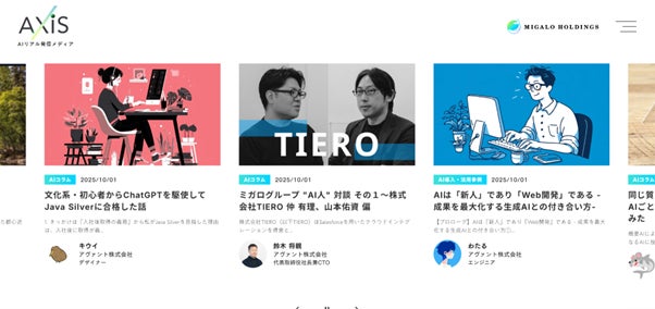 「デジタル」と「リアル」の融合で新たな価値を創造する企業、ミガロホールディングス株式会社(本社:東京都新宿区、代表取締役社⻑:中⻄ 聖、証券コード:5535) は、新しいAIメディア「AXiS(アクシス)」を立ち上げます。