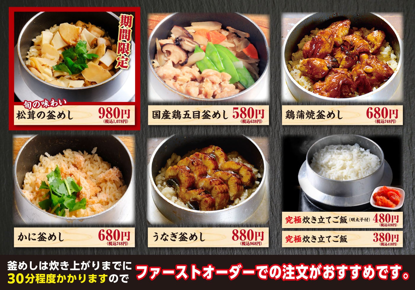 も引き続きご提供中。いずれもご注文をいただいてから**一釜ずつ丁寧に炊き上げます!