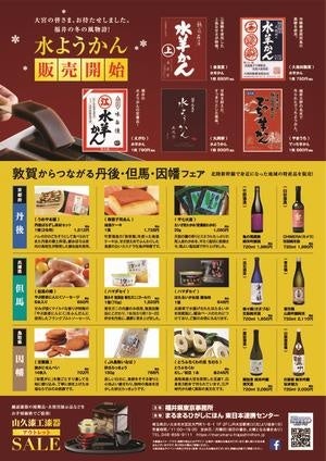 福井県の冬の風物詩「水ようかん」に加え、全国的に人気がある福井県の地酒が大集結!また、北陸新幹線でより身近になった地域の特産品を販売する「敦賀からつながる丹後・但馬・因幡フェア」も同時開催! この機会にまるまるひがしにほんへぜひお越しください!