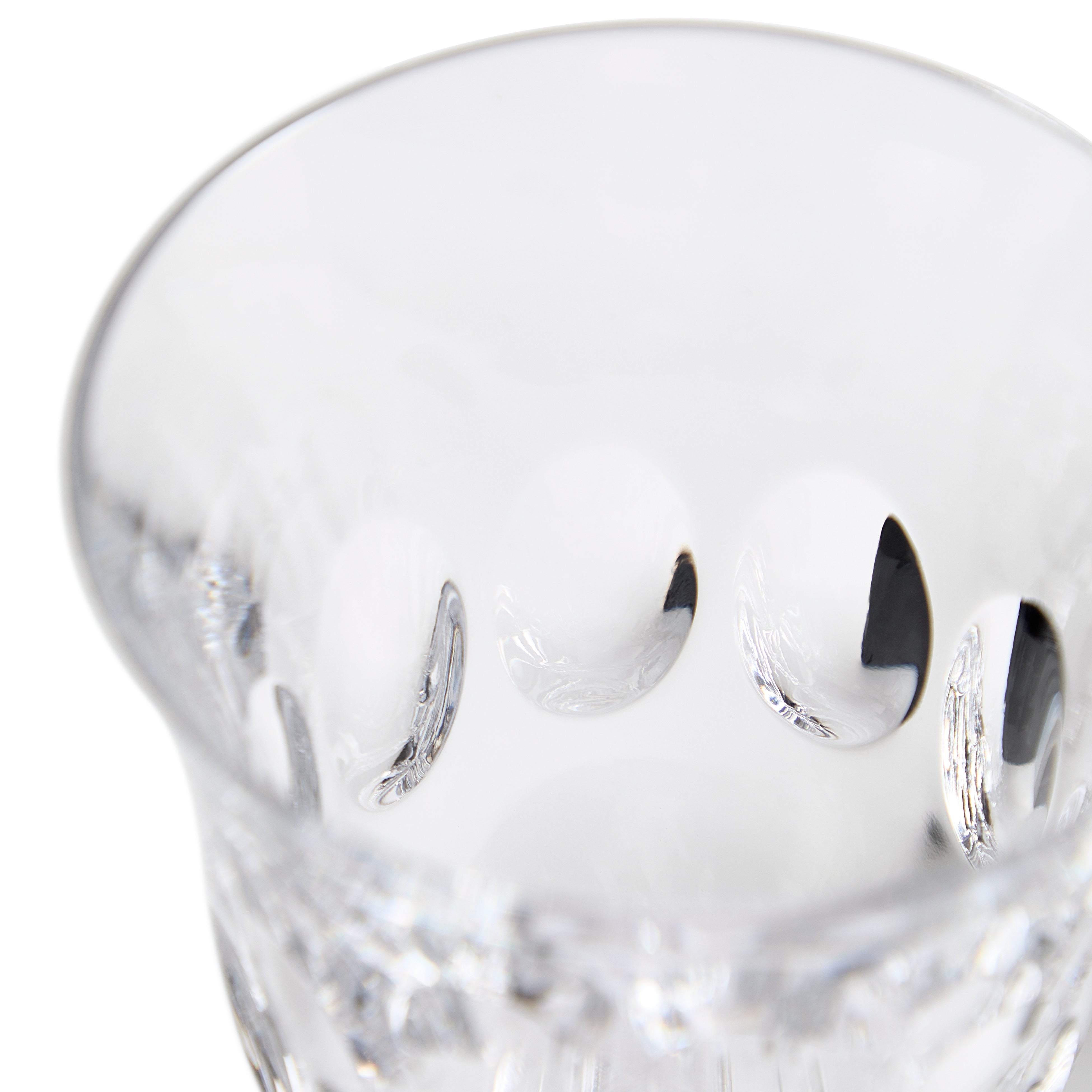 「シグネット」は、ブランドの根幹ともいえる18世紀のアーカイブに残る象徴的なネオクラシカル(新古典主義)のモチーフからインスピレーションを得ています。楕円形のカメオが、繊細で精巧なカットによってモダンなグラスウェアとして再解釈されています。オーバルモチーフは、美しいだけでなく、手にもちやすいシェイプでもあります。