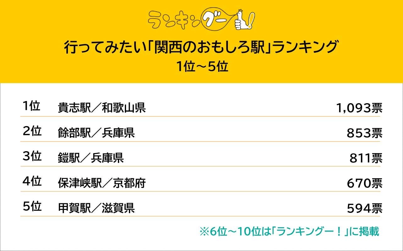 ◆行ってみたい「関西のおもしろ駅」ランキングTOP5抜粋
