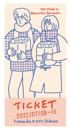 今回の来場特典は、「麦くんが『花束みたいな恋をした』上映会のチケットデザインを頼まれたので、つくってみた」というテーマで、劇中でも麦くんのイラストを担当したイラストレーター朝野ペコさんによる描き下ろしでデザインされたオリジナルチケットとなっています。