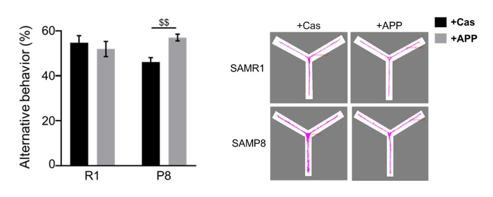 APPを摂取したSAMP8マウスでは、短期記憶の低下が有意に予防された。
