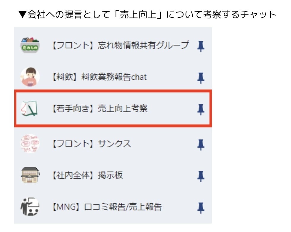 また、会社への提言・売上に対する考察などをアウトプットする場(グループチャット)を設けることで、経営者目線を養いながら働くことへの意味づけや意欲向上を推進しています。