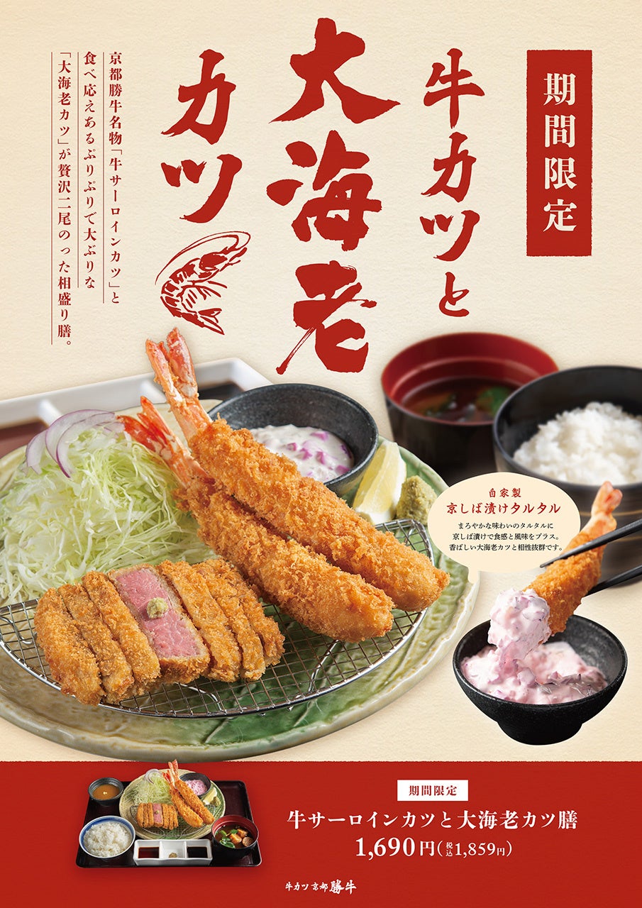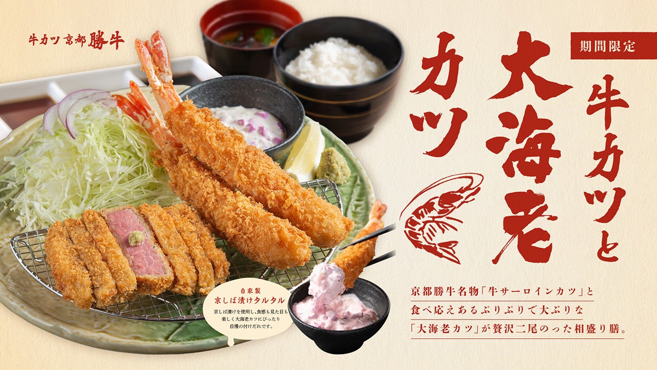 【牛カツ京都勝牛】秋の新作はぷりぷりの大海老!人気の「肉と海鮮の相盛り膳」シリーズから期間限定『牛カツと大海老カツ膳』販売スタート!