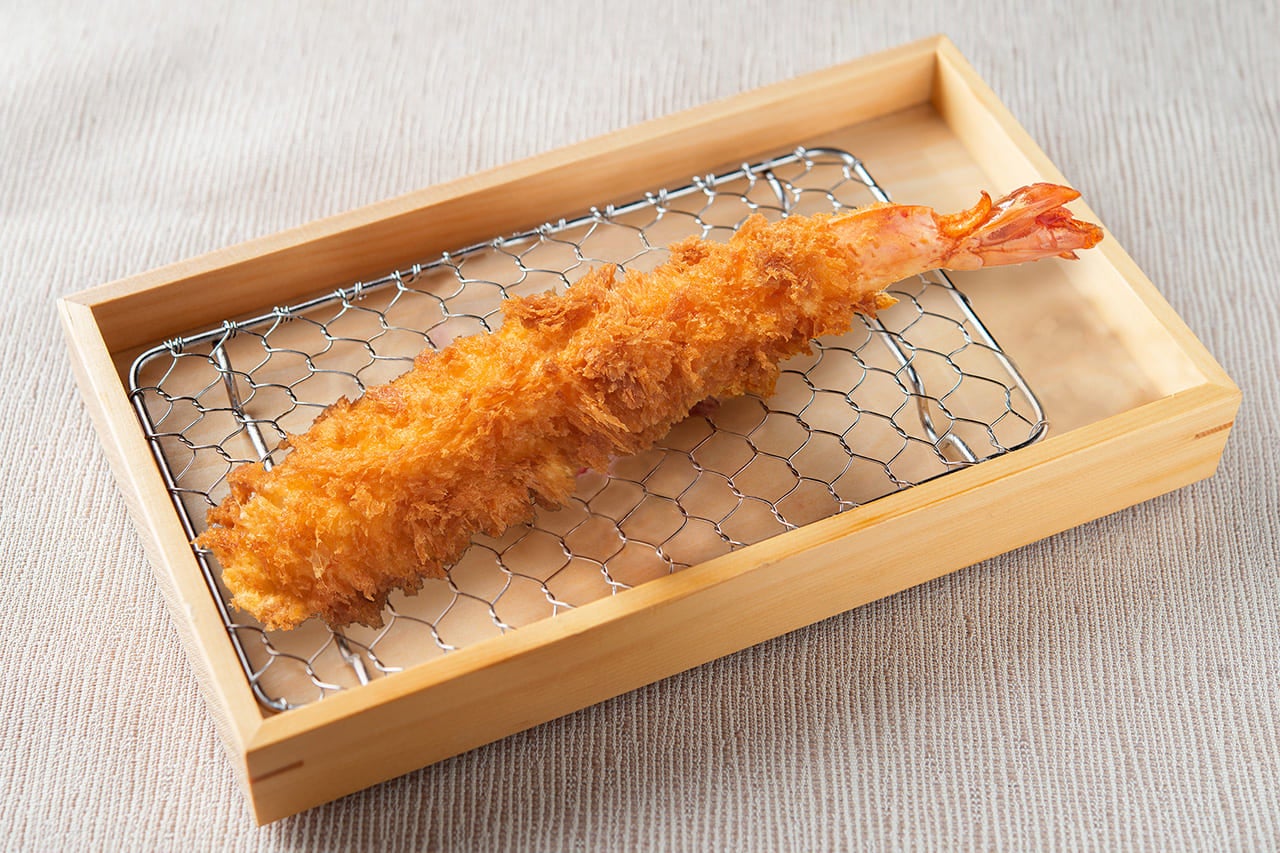 さらに、通常牛カツで使用している微細なパン粉とは異なる“大海老カツ専用の生パン粉”を特注。粗めに引いたふわふわの生パン粉は、高温で揚げることでサックサクの軽やかな食感を生み出します。