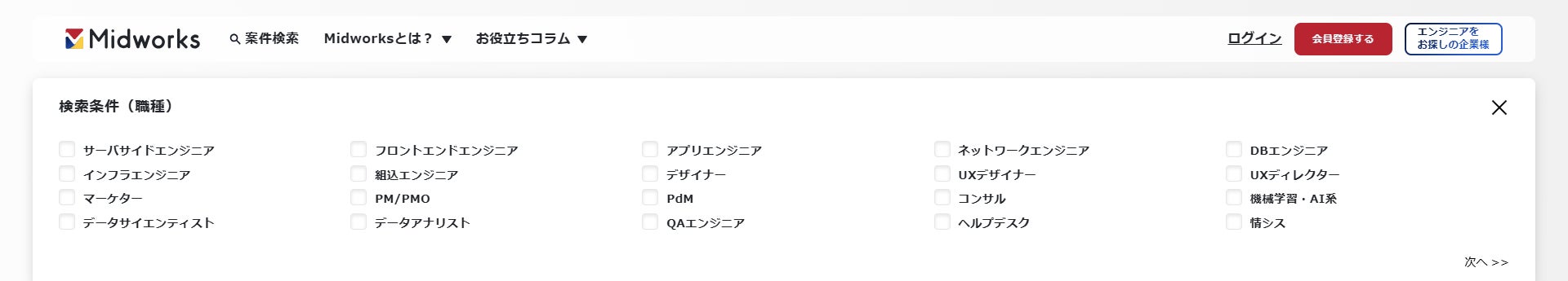 Midworksは、フリーランスエンジニアと企業のマッチングサービスです。