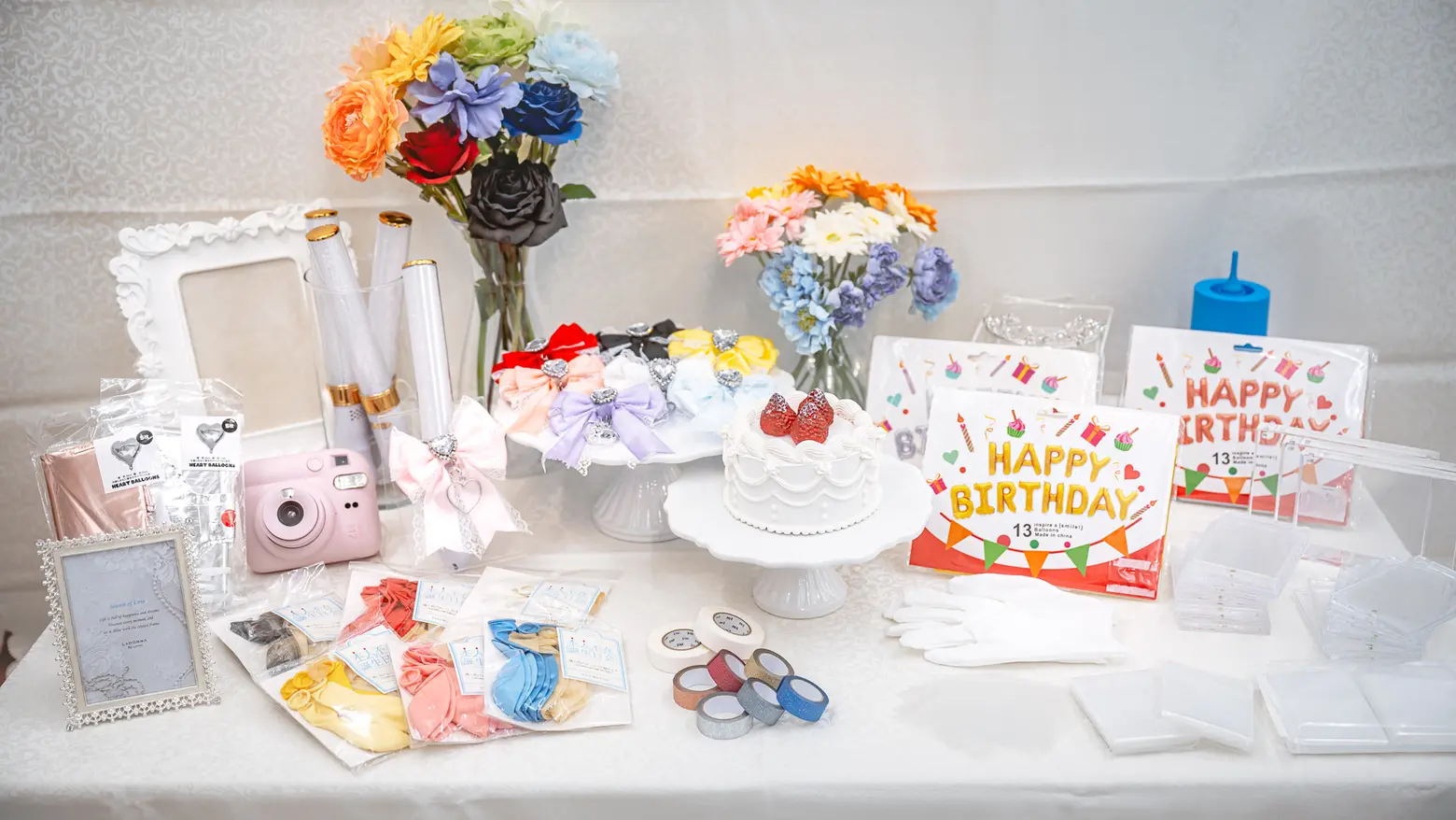 撮影機材や、「ハート」「HAPPY BIRTHDAY」などの形をしたバルーン、クリアカードホルダー、フォトフレーム、クレイケーキなど推し活がより映えるアイテムを多数ご用意。バルーンを膨らませるポンプやマスキングテープも使い放題で、持ち込みも自由のため様々な装飾を楽しむことができます。