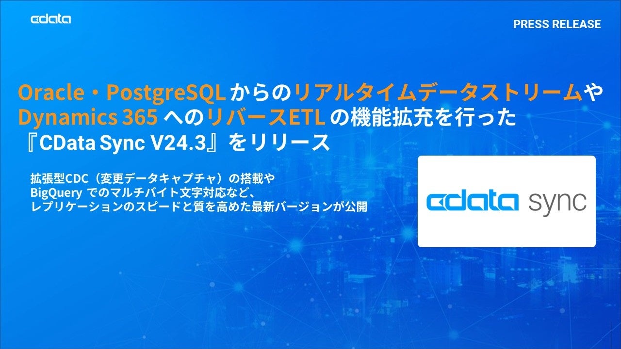 Oracle・PostgreSQL からのリアルタイムデータストリームやDynamics 365 へのリバースETL の機能拡充を行った『CData Sync V24.3』をリリース