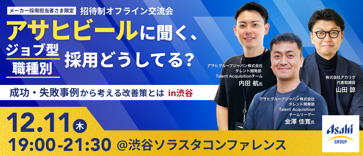 【開催レポート】アサヒビールに聞く、ジョブ型/職種別採用どうしてる?成功・失敗事例から考える改善策とは in渋谷