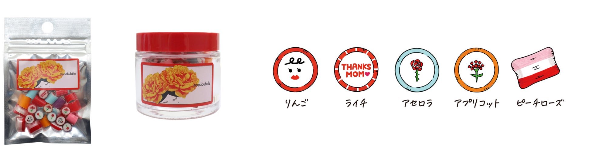 ・母の日ミックス 税込み価格:BAG 670円 / S瓶 980円